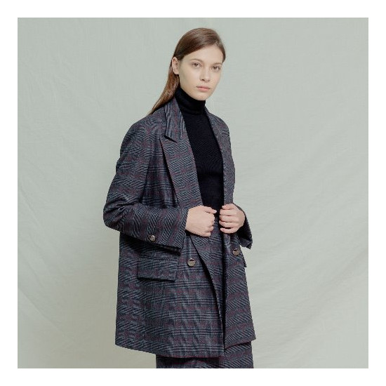 라일라 체크 더블 자켓 [그레이]