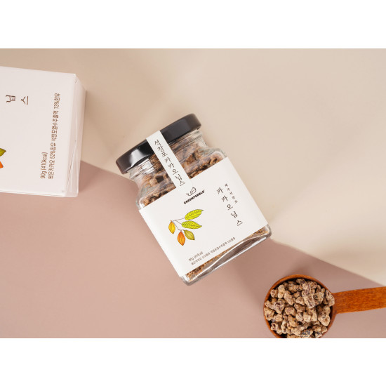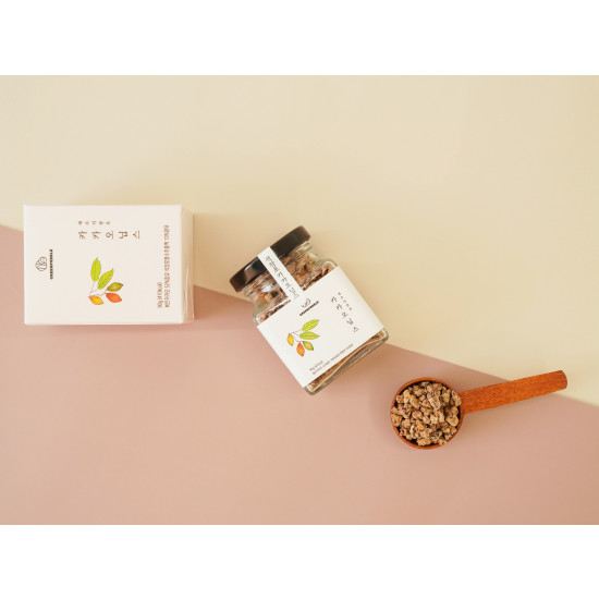 직접 키운 석창포를 추출하여 농축한 13브릭스의 석창포액을 카카오닙스에 입혔습니다. 석창포 추출액의 묘한 함이 카카오닙스를 감싸 몸에 좋은 카카오닙스를 거부감 없이 맛있게, 오래오래 즐기실 수 있어요요구르트에 넣어서, 시리얼에 섞어서, 샐러드 토핑으로 꾸준하게 드세요.