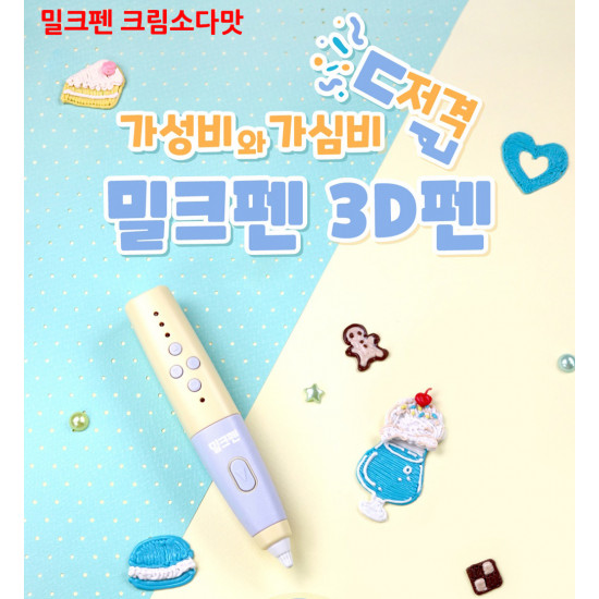 펜톡 밀크펜 저온 3D펜 어린이용 PCL 필라멘트 3색 (도안 재료 포함) 크림소다맛