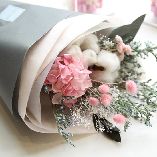 전체보기[더봄/프리저브드플라워] 목화와 핑크수국꽃다발