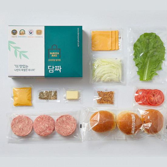 [담짜몰] 100% Beef 정통 미국식 수제 치즈 햄버거 밀키트(3인분/740g)