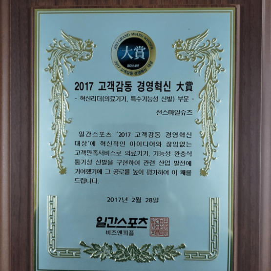 신발에 대한 국내 발명특허를 받고 TV업체를 통해 방영됐으며, 2017년 생활체육에 대한 고객감동형 경영혁신 대상을 수상했다. 신발 특허를 받은 완충형 통기성 신발은 신발 바닥에 특수 스프링이 장착돼 걸을 때마다 자동으로 지압을 해주기 때문에 이 신발을 신으면 약한 근육과 기력이 강화될 뿐만 아니라 자세 교정에도 도움이 된다.