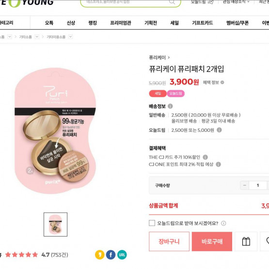 현재 올리브영에서 2매에 4,900원에 판매되고 있는 제품을 특별히 이곳에서만 저렴하게 제공하고 있습니다.